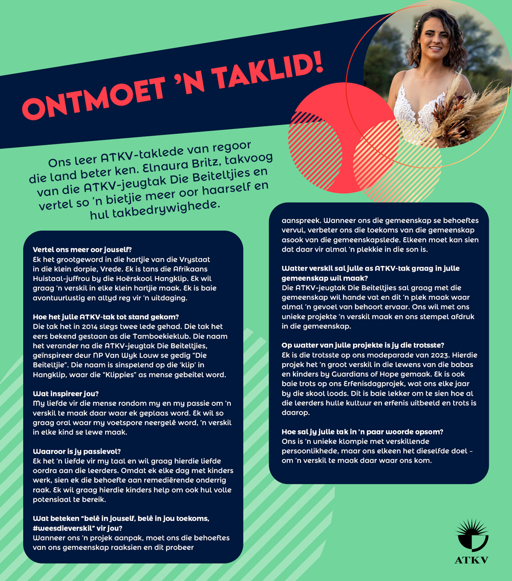 Selfoonnommer: +27710663530 E-posadres: christies@atkv.org.za |